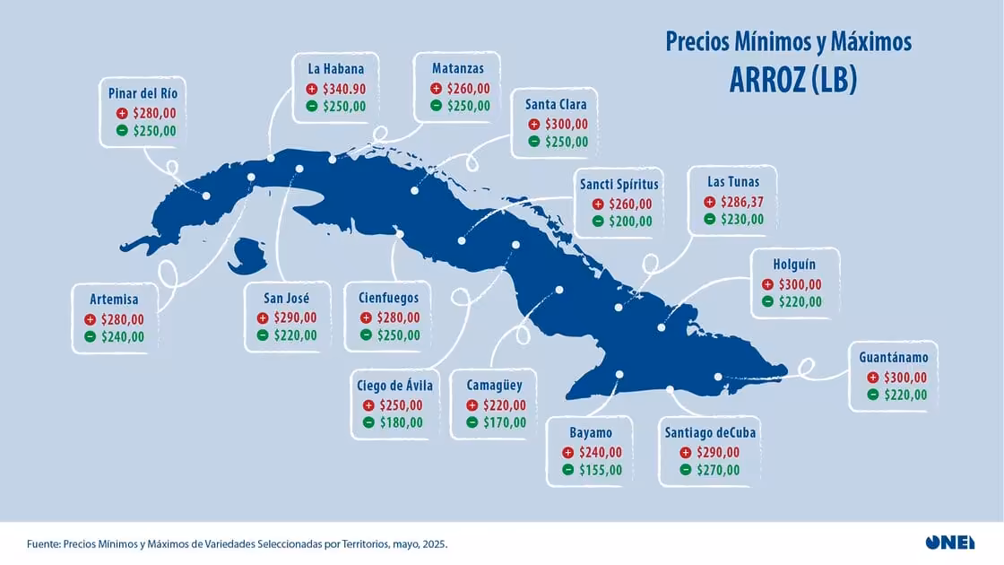 El arroz, un alimento esencial en la dieta de los cubanos, registró notables diferencias de precio entre las distintas regiones, según datos correspondientes al mes de mayo de 2025.