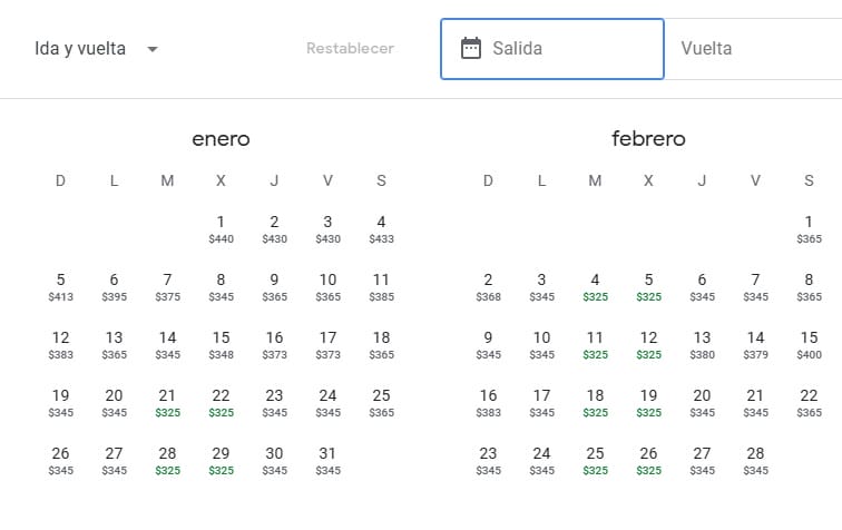 Ya te hemos contado que en plataformas como Google Flights, puedes visualizar los precios de los vuelos en un mapa interactivo. Esta herramienta te permite identificar las fechas más económicas y comparar diferentes opciones de aerolíneas, lo que te da una visión clara de cuándo es más barato volar. Por ejemplo, en los primeros días de febrero, puedes encontrar vuelos a Cuba desde $325.