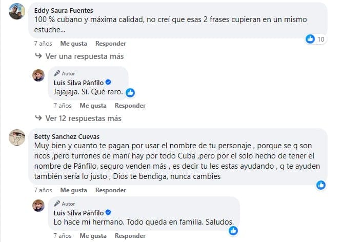 “Qué bueno. Me imagino que este producto va a pasar a la historia”; “Si está de bueno como Vivir del Cuento, me lo como con los ojos cerrados”; “Trae para acá para Miami que si no pierden su gran sabor cubano te vas a volver millonario porque yo cuando voy a Cuba tengo que traer a mis hijos y amistades”, fueron algunos de los comentarios que recibió la publicación.