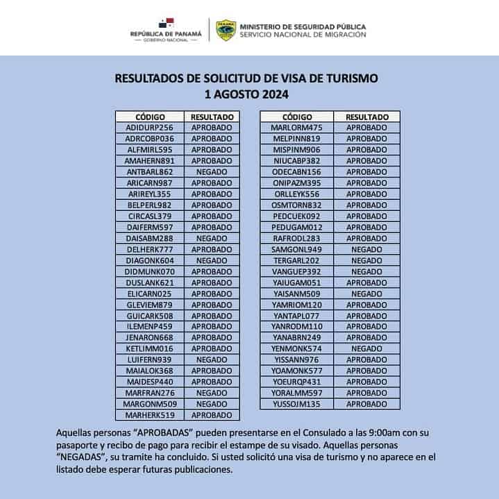 A continuación, los últimos resultados de visas de turismo para Panamá, proporcionados por el Consulado en Cuba.