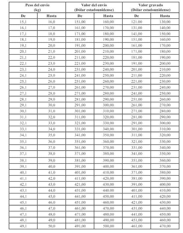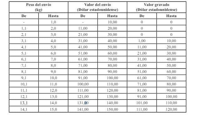 Además, se mantiene la exención del pago del impuesto aduanero por los primeros treinta dólares estadounidenses (30 USD) o su peso equivalente de tres kilogramos (3 kg) del envío. Para los valores que excedan este monto, se aplicará una tarifa arancelaria del treinta por ciento (30%). (Ver tabla al final)
