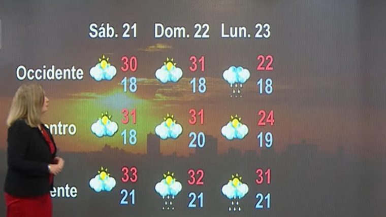 Ese día se espera una temperatura máxima de apenas 22 grados Celsius en la región occidental, una diferencia considerable respecto a los valores actuales que rondan los 30 grados. Este descenso marcado contrastará con el oriente del país, donde durante el resto del período las máximas podrían mantenerse entre 32 y 33 grados Celsius, con lluvias aisladas en zonas de la costa norte oriental.