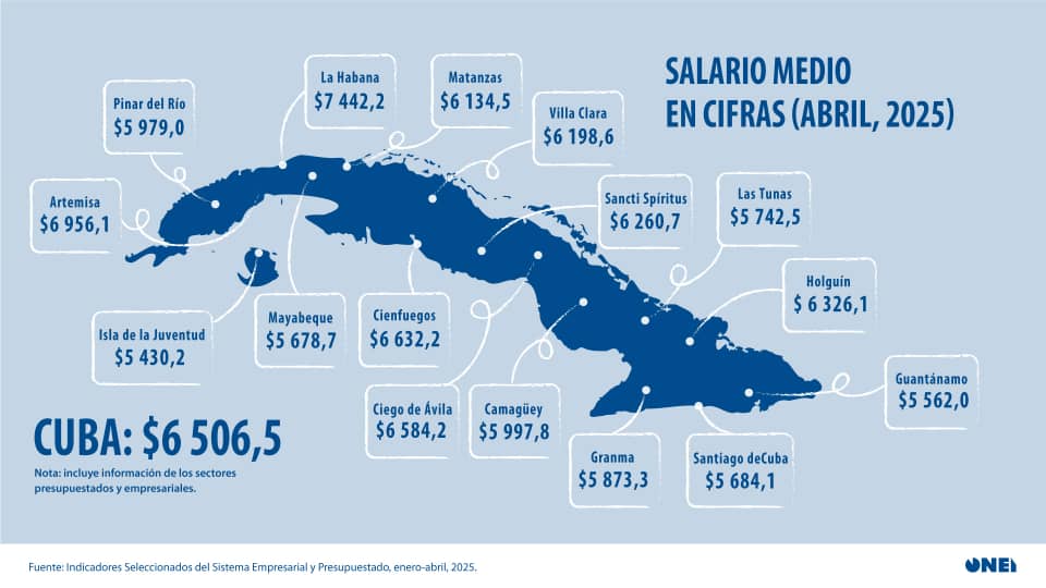 La Oficina Nacional de Estadística e Información (ONEI) dio a conocer las cifras oficiales del salario medio mensual en Cuba correspondiente al mes de abril de 2025.