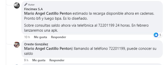 7. Esa apps ya existía, y los mismo funcionarios de Fincimex no tenían conocimiento de ella , era muy útil, te hacía algo minimamente fácil en este país q hasta respirar es difícil. Ahora por q yo si estoy en una tienda y deseo saber el saldo DE MÍ TARGETA , EUROS QUE ME PONEN A MÍ NO AL ESTADO( LE DIGO ASÍ POR LLAMARLE DE ALGUNA MANERA PERO TODOS SABEMOS Q ES LO NOS GOBIERNA ) Tengo que tomar mí tlr y llamar a un operador ??? por que ?? expliquenme quien fué el de la brillantisima idea ?? Seguro que es el q puso q ya no se puede sacar $ por el cajero , tiene q ser por Post. Y dicho por los mismos fincionarios de Fincimex q los Post son muy viejo **palabras textuales están en obsolesencia** Y cómo los encargados de reportar La rotura es BM , NO LO HACEN. LA ÚLTIMA VES YO TUVE Q IR A 6 BANCOS EN UNOS NO HABÍA CONEXION Y EN OTROS ESTABA ROTO EL POST TWRMINÉ CAMBIANDO EL $ UN HOTEL EN PLAYA , Y YO VIVO EN LAWTON NO TENGO TRASPORTE . 2500 ME COSTÓ LA GRACIA . SIN CONTAR LA MALA CALIDAD DE LA TARGETA , SI LES RESPIRAS MUY FUERTE SE MAGNETIZAN . FINCIMEX TIENE UN PÉSIMO SERVICIO, ( BUENO EN ESTE PAÍS Q NO LO TIENE??)NO PUEDES TRANSFERIR , YO PADESCO DE FIBROMIALGIA, Y HAY DÍAS Q SE ME DIFICULTA ,PERO TENGO QUE IR OBLIGADO POR Q NO PUEDO PASARLE A MÍ HERMANA O MÍ MAMÁ ES SALDO DE MÍII TARGETA .ESTO ES CÓMO UN JUEGO MACABRO UN EXPERIMENTO SOCIAL , HABER HASTA DONDE LLEGA EL AGUENTE DEL CUBANO. ES TAN OBSURDO , UN ROBO EN TUS PROPIA CARA , SÍ A MÍ ME MANDAN 500€ , A MI , A MÍ CUENTA A MÍ TARGETA , SI LO QUIERO SACAR DEL BANCO , POR Q ME LO DAN EN DINERO CUBANO Q ESO Y PAPAEL HIGIÉNICO ES LO MISMO , NO TIENE VALOR , EN NINGUN LUGAR DEL MUNDO , DONDE ESTÁ MÍ DINERO? , CÓMO VAN A DECIR Q NO HAY DOLARES O EUROS , Y LO Q YO TENGO EN LA TARGETA QUE ES ?? PUNTOS FINCIMEX, LA DICTADURA Y TODOS ELLOS NOS ESTÁN MATANDO DE HAMBRE , SIN MEDICAMENTOS. HASTA CUANDO CUBANO VAS A TENER LA CABEZA EN LA GUILLOTINA???