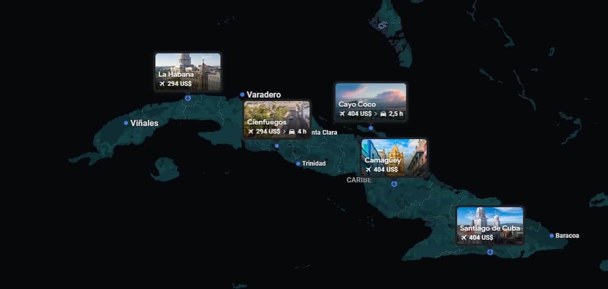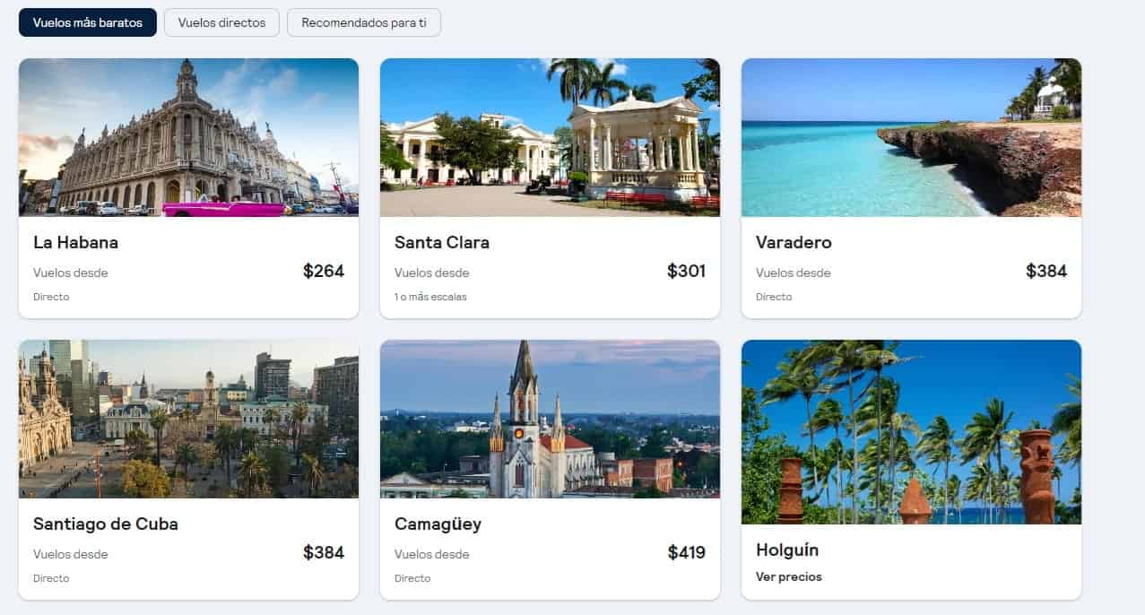 – Miami a Santiago de Cuba: Vuelo directo con un precio inicial de 384 USD.