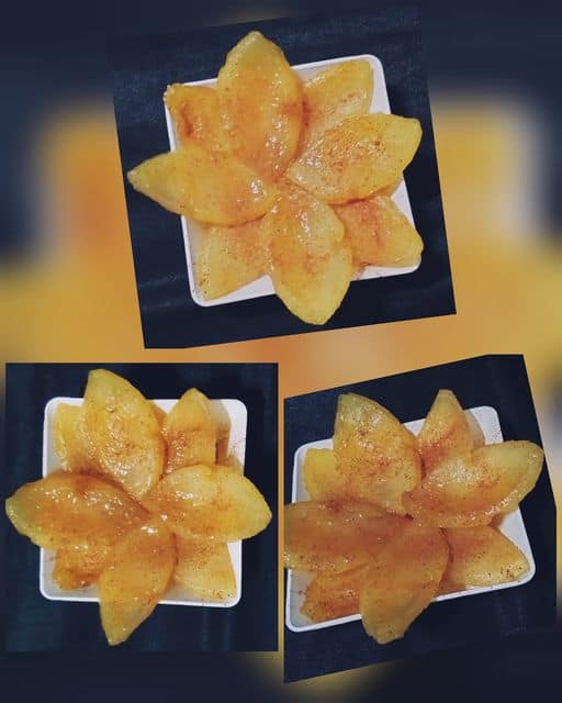 La fruta madura tiene un color amarillo o anaranjado, y los bordes se tornan oscurecidos. Así es como la necesitamos para el postre que proponemos. Debemos fijarnos en que la piel esté sana. Solo debemos cortarla justo antes de consumirla, o de preparar con ella algún platillo o trago.