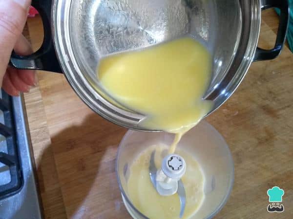 - Después, depositamos la mezcla en una licuadora y batimos bien por unos 3 minutos. También podemos usar un batidor de mano (solo debemos aumentar el tiempo de batido).