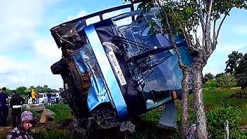 Ómnibus Yutong que trasladaba viajeros del exterior se vuelca en Sancti Spíritus