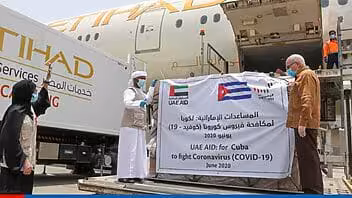Los Emiratos Árabes Unidos enviaron a Cuba un avión con ocho toneladas métricas de suministros médicos para cooperar con los esfuerzos de la Isla en su enfrentamiento a la covid-19.