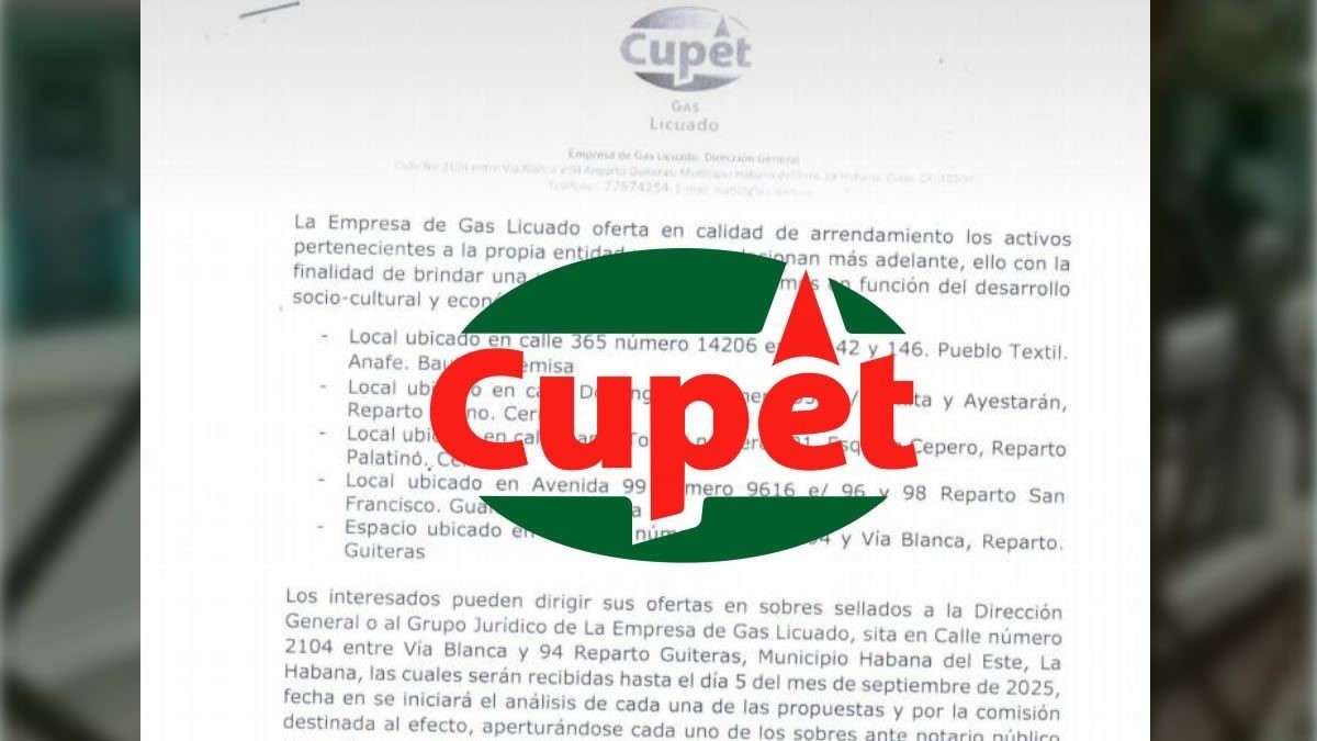 La Empresa de Gas Licuado (Cupet) anunció la apertura de varios de sus locales para arrendamiento a entidades interesadas, en un contexto marcado por la escasez de combustibles y los prolongados apagones que afectan al país.