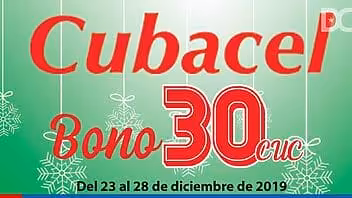 La Empresa de Telecomunicaciones de Cuba (ETECSA), pone a disposición de sus clientes prepago la última oferta del año. Del 23 al 28 de diciembre de 2019, Cubacel lanzará la Promoción de Recarga Internacional “Bonifica tu Recarga con 30 CUC”.