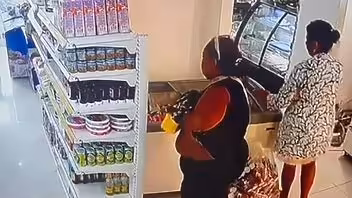 Las cámaras de seguridad de una tienda en la intersección de Zapata e Infanta captaron a dos mujeres robando grandes piezas de queso.