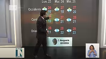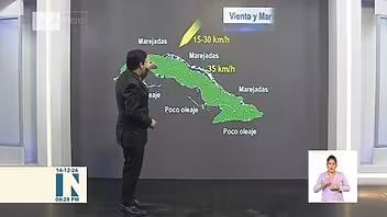 El meteorólogo Elier Pila informó en el noticiero de la televisión cubana que este domingo 15 de diciembre Cuba estará bajo la influencia de un flujo del nordeste debido a la combinación de altas presiones sobre gran parte del territorio y una circulación de bajas presiones en superficie ubicada cerca de la República Dominicana.