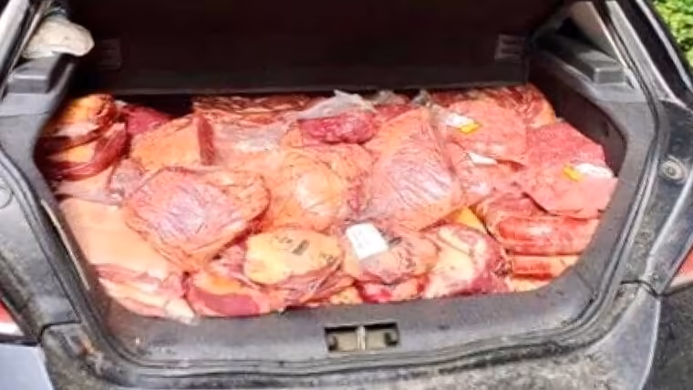 Al realizarse una revisión de sus camiones, se descubrió la existencia de carne de cerdo valorada en 550 mil dólares. Toda la carne fue incautada por las autoridades.